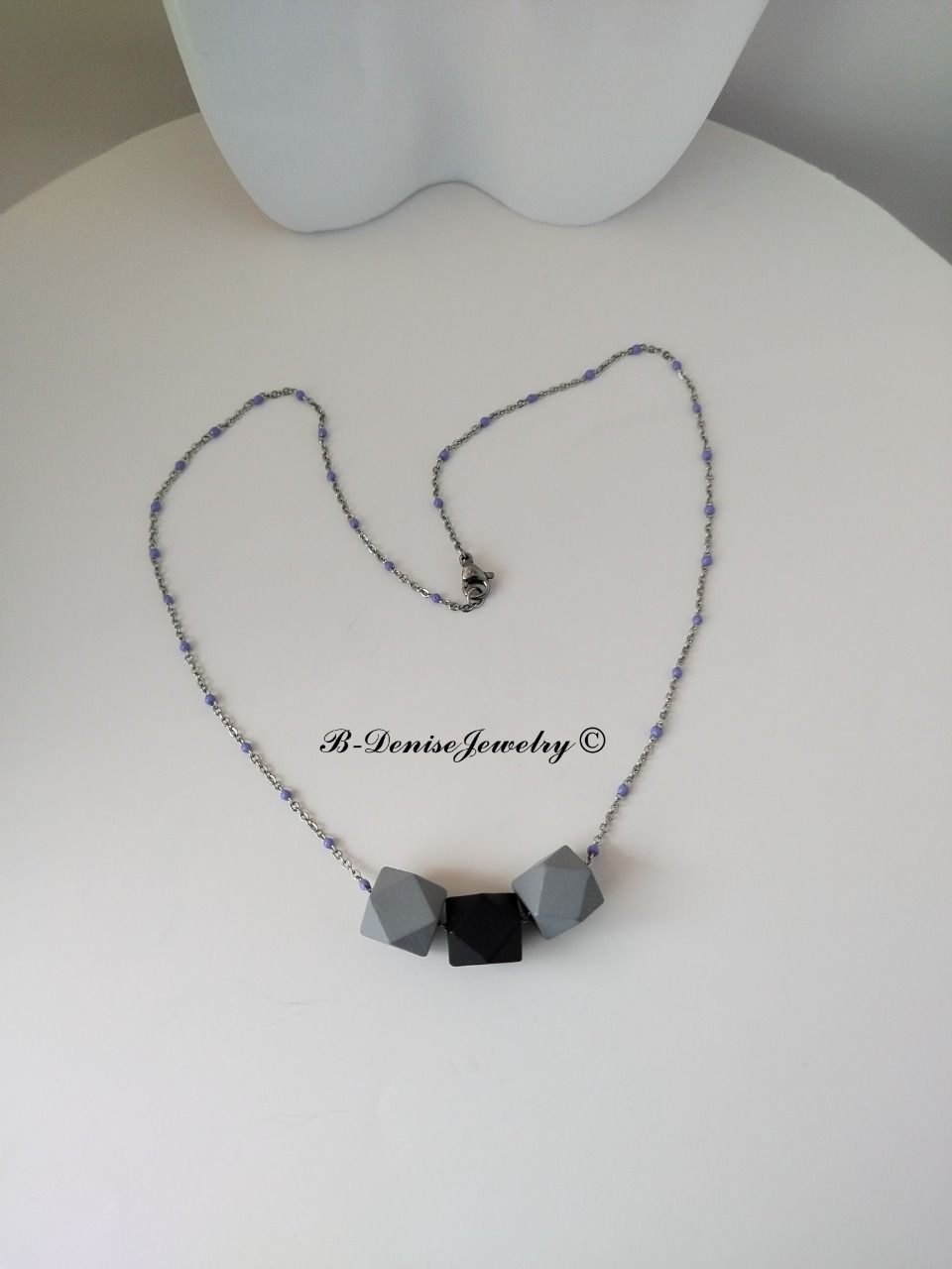 Collier en Acier Inoxydable avec Perle Hexagonale en Bois Longueur 45 cm Collection B-Denise Jewelry